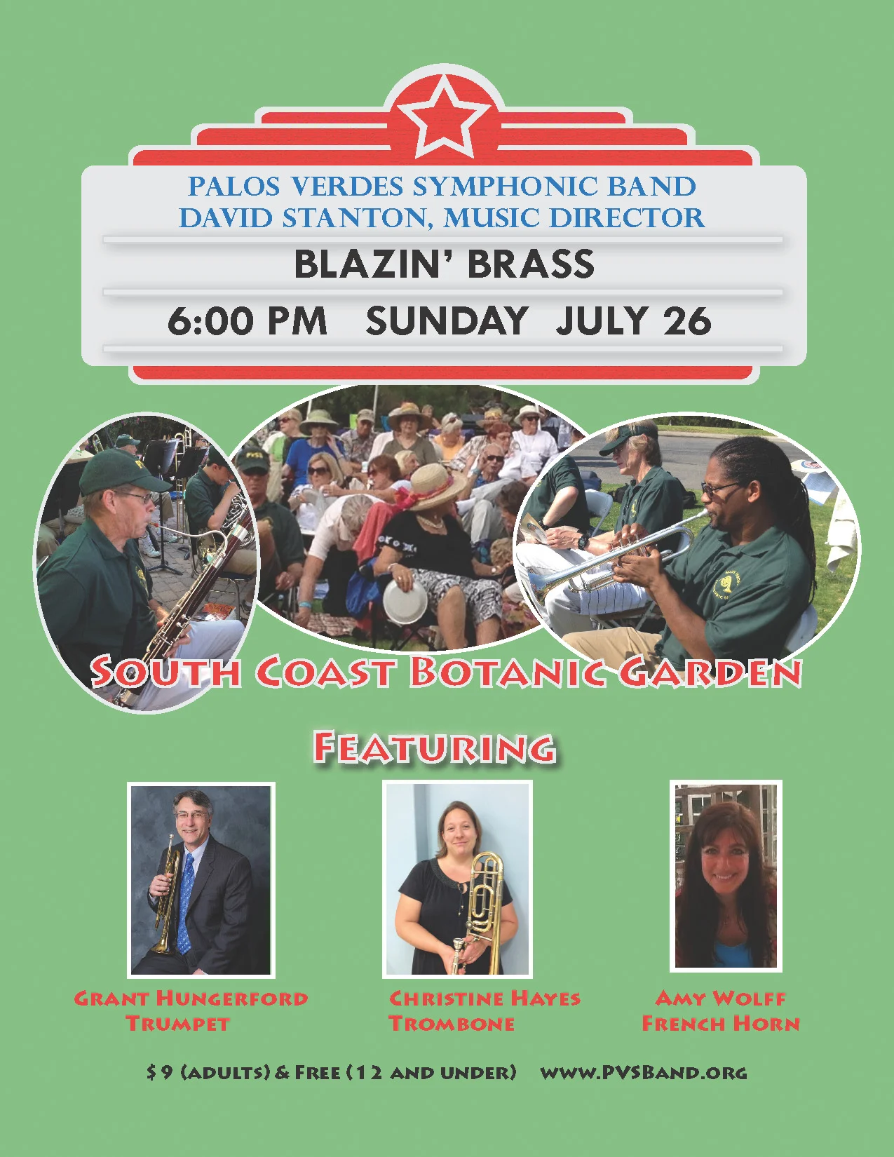 - Tickets are $9 (adults) and free (12 and under) Available just prior to concert time